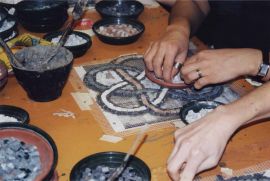 Since in 1998 we hold our first course in the museum for children and youths in Schöneberg we made mosaics with children and youths in different constellations and with different materials and techniques.