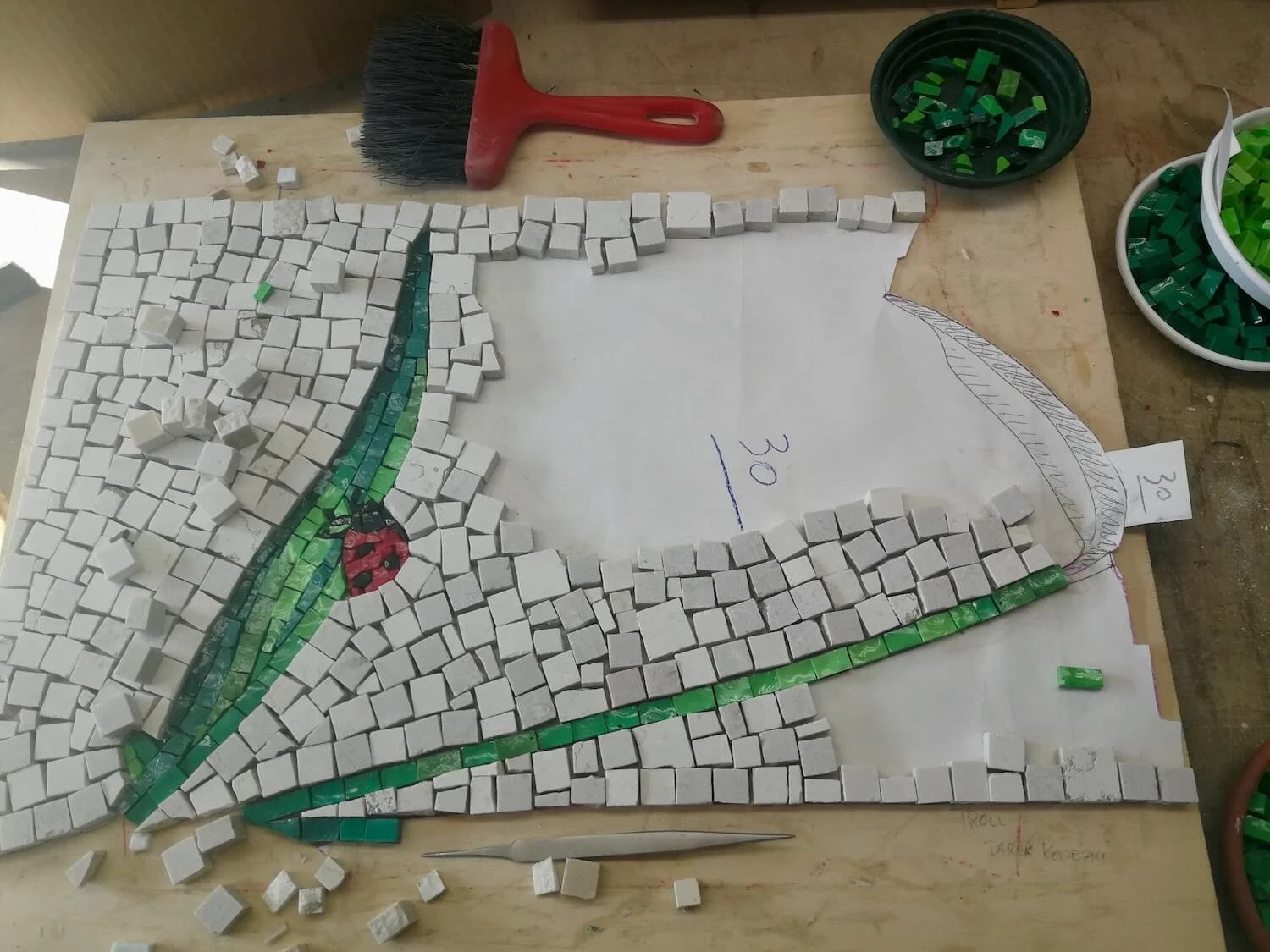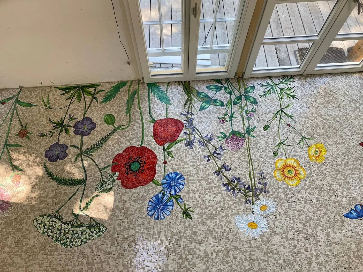 Floor mosaic made of limestone and smalti in a garden house, 3 × 4 m
